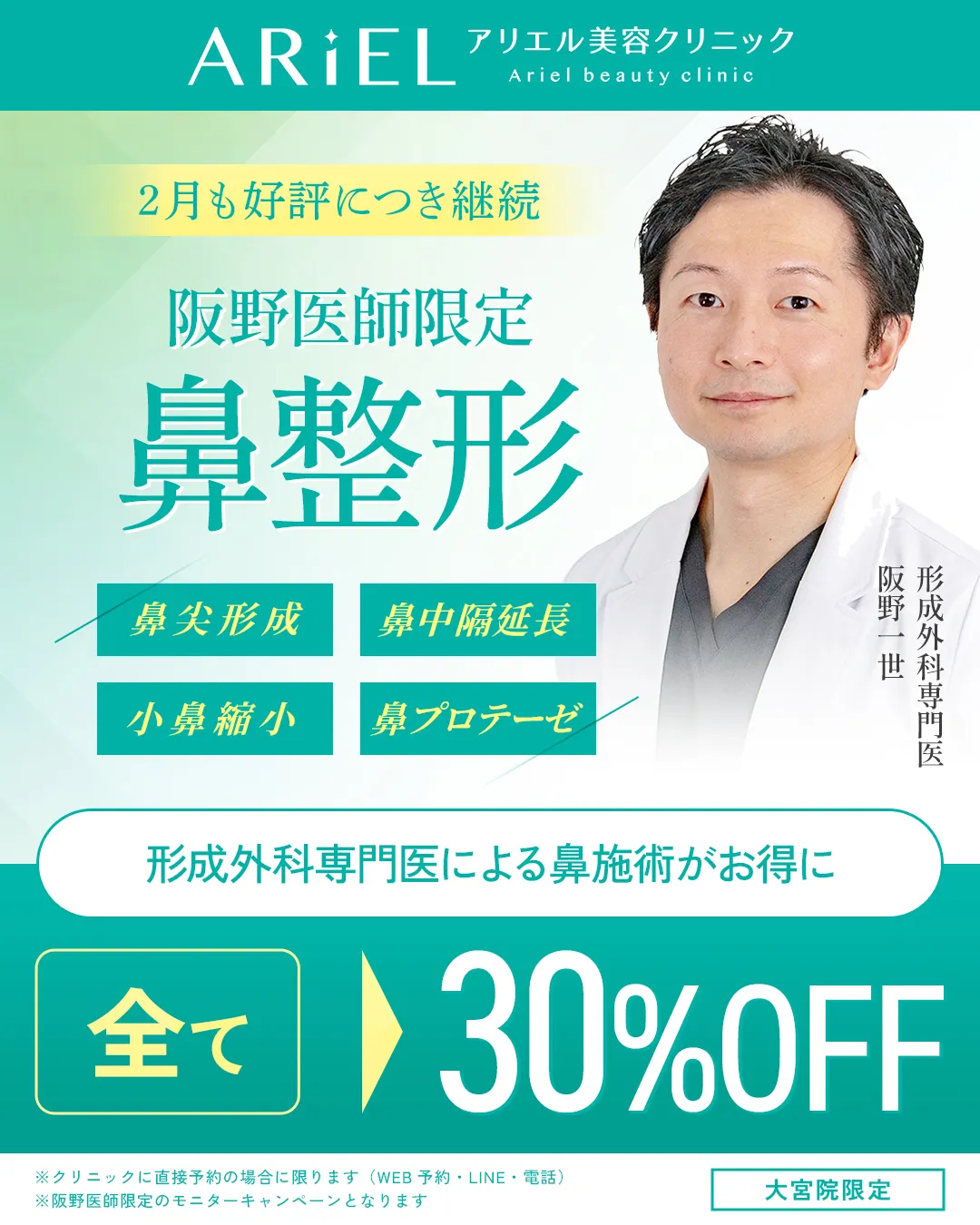 はじめまして。アリエル美容クリニックの阪野一世(さかのいっせい)です。
