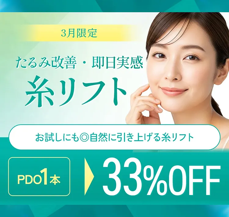 【糸リフト1本】料金(税込):¥14,080~¥54,780|リスク・副作用:腫れ・内出血・ひきつれ・感染などを生じることがあります。